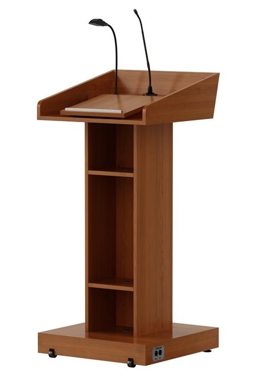 A sturdy and elegant stand designed for lectures, presentations, and conferences. Offers a professional platform for speakers, complete with space for notes, books, or devices, while adding authority and style to any stage or boardroom.